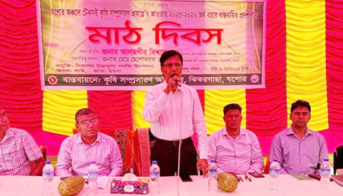 যশোর অঞ্চলে টেকসই কষি সম্প্রসারণ প্রকল্পে’র আওতায় ২০২৫-২০২৬ অর্থবছরে বাস্তবায়িত প্রদর্শনী মাঠ দিবস পালিত হয়েছে। মঙ্গলবার সকাল ১১টায় পানিসারা ইউনিয়নের রাজাপুর মাঠে অনুষ্ঠিত মাঠ দিবসের আলোচনা সভায় প্রধান অতিথির বক্তব্য রাখেন, যশোর কৃষি সম্প্রসারণ অধিদপ্তরের অতিরিক্ত পরিচালক আলমগীর বিশ্বাস।